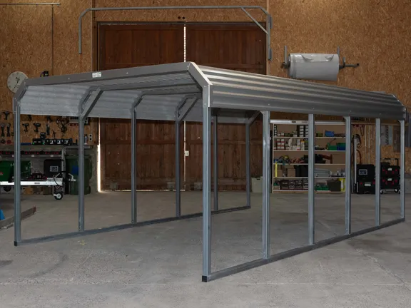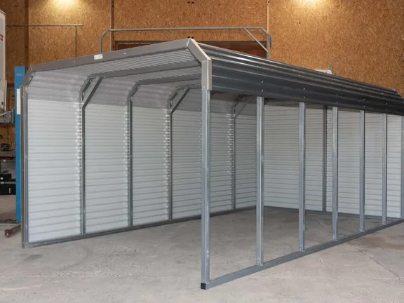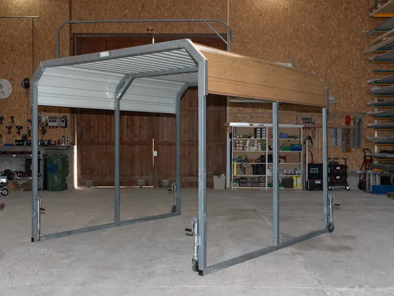 Unterstand wird in unserer Produktionshalle oder vor Ort zusammengebaut